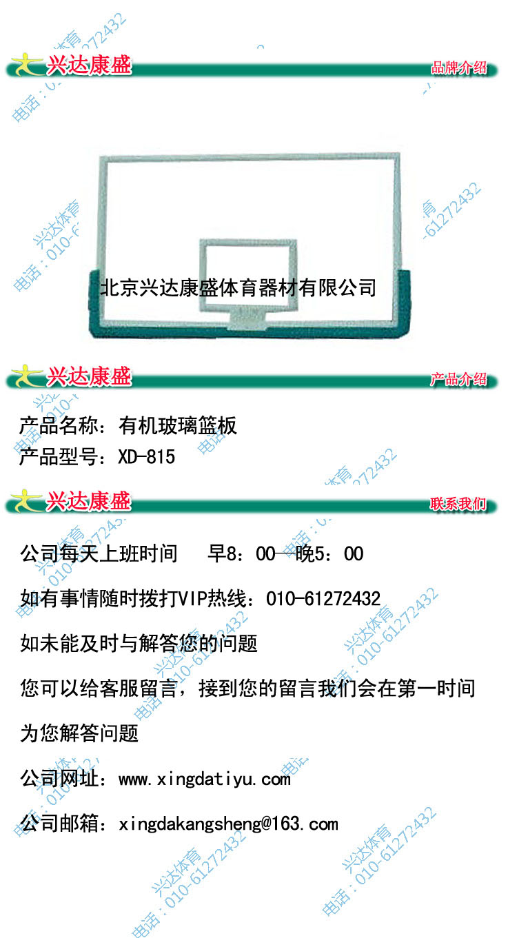 Ø 有機玻璃籃板XD-815